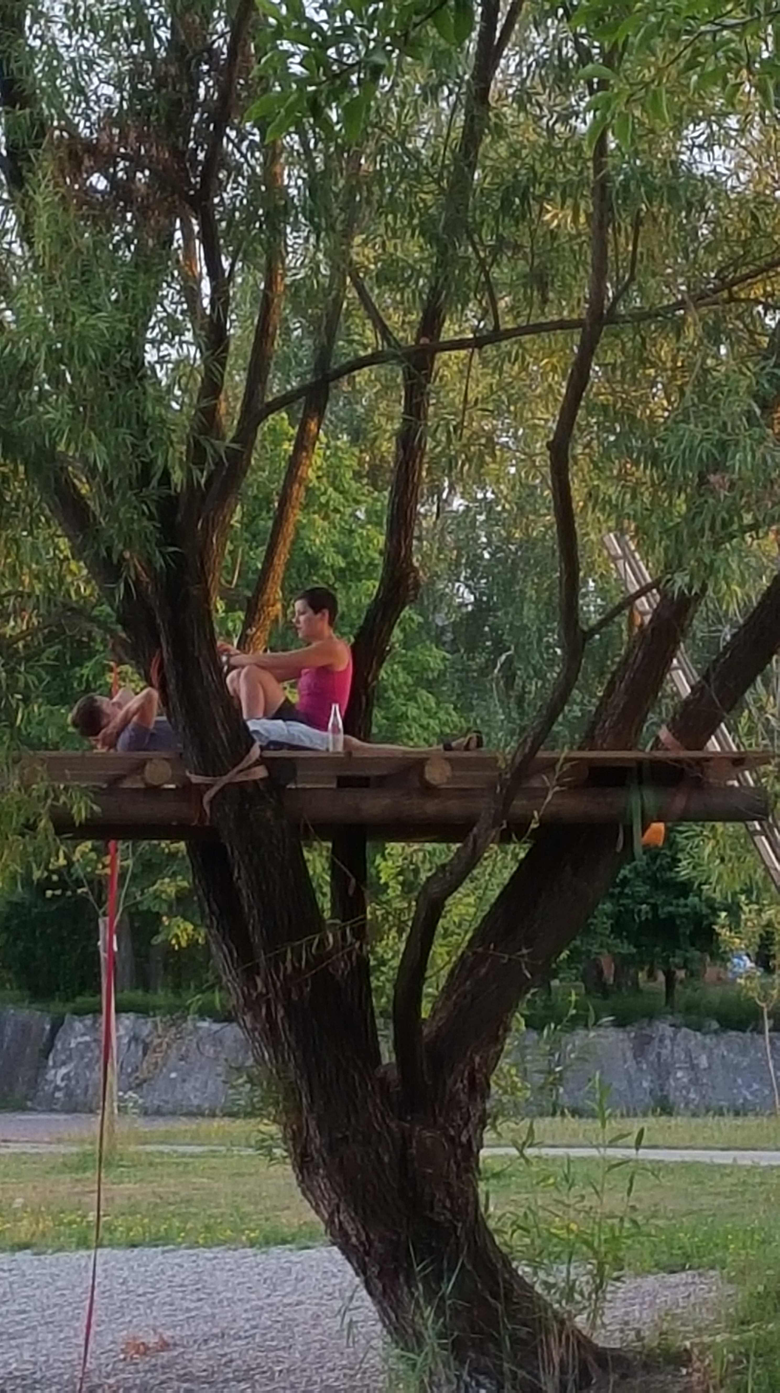 Peter, the bike mechanic & Wilma, the cook up a tree