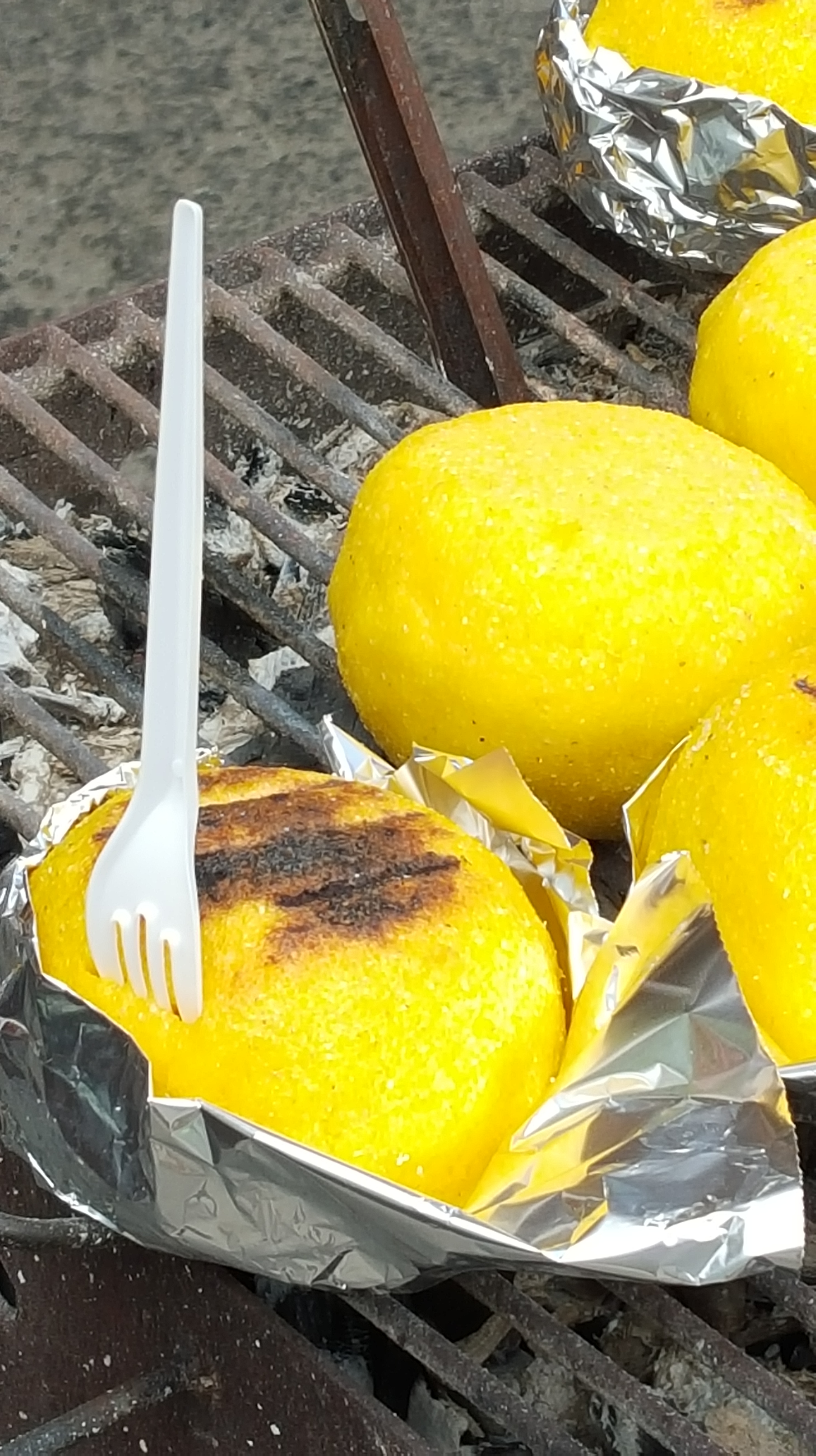 Jim got to eat a funnel cake a pastry made by forming dough around a metal cylinder and then rolling back and forth over a charcoal fire until it is browned on the outside. The funnel of pastry is removed from the cylinder and rolled in cinnamon and sugar.