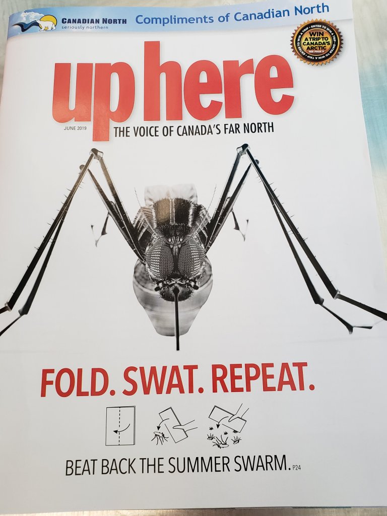 The mosquitos arrived in force tonight. We realized at the Canada North airline desk that we better take the issue seriously when we saw their in-flight magazine:
