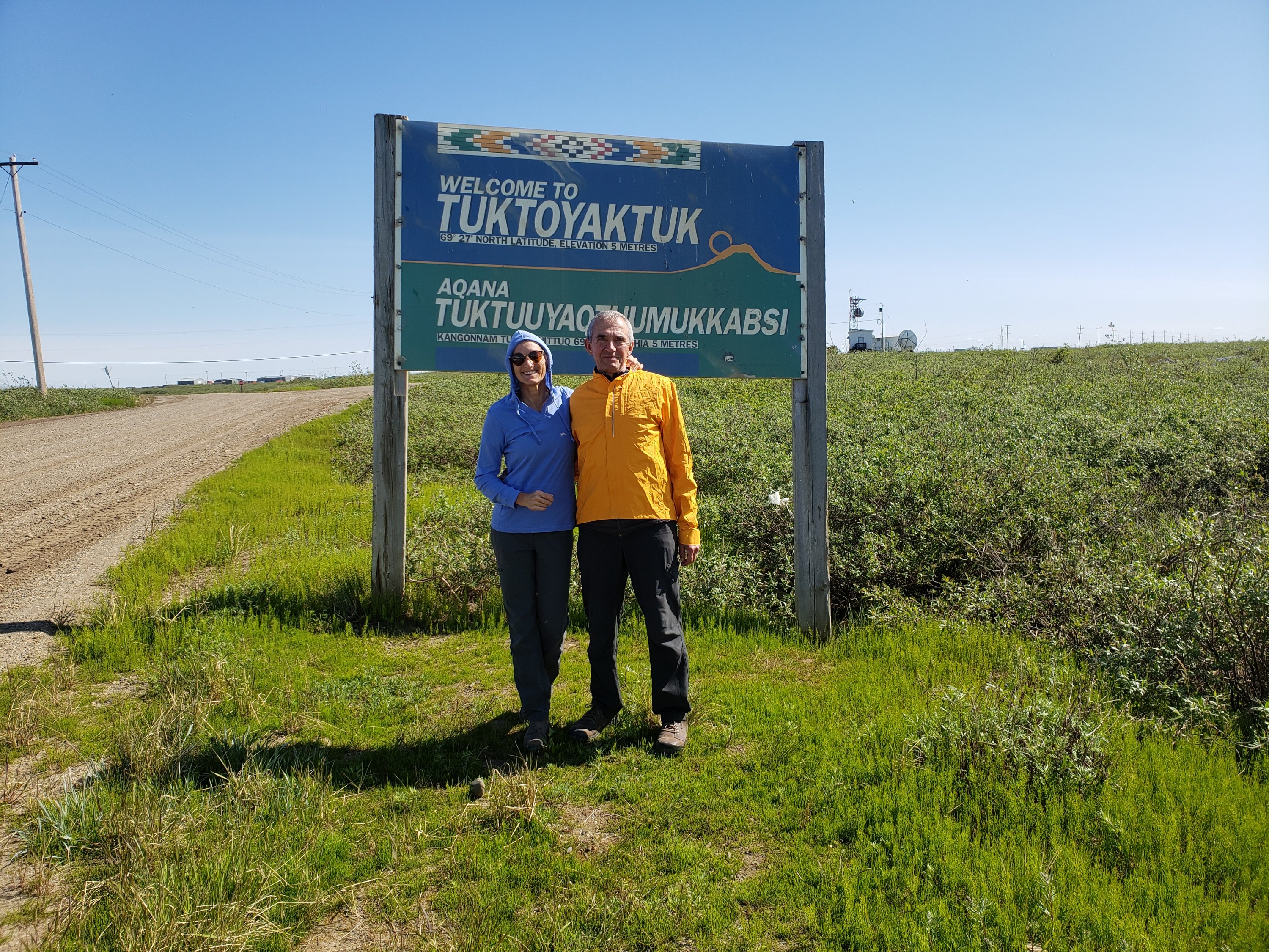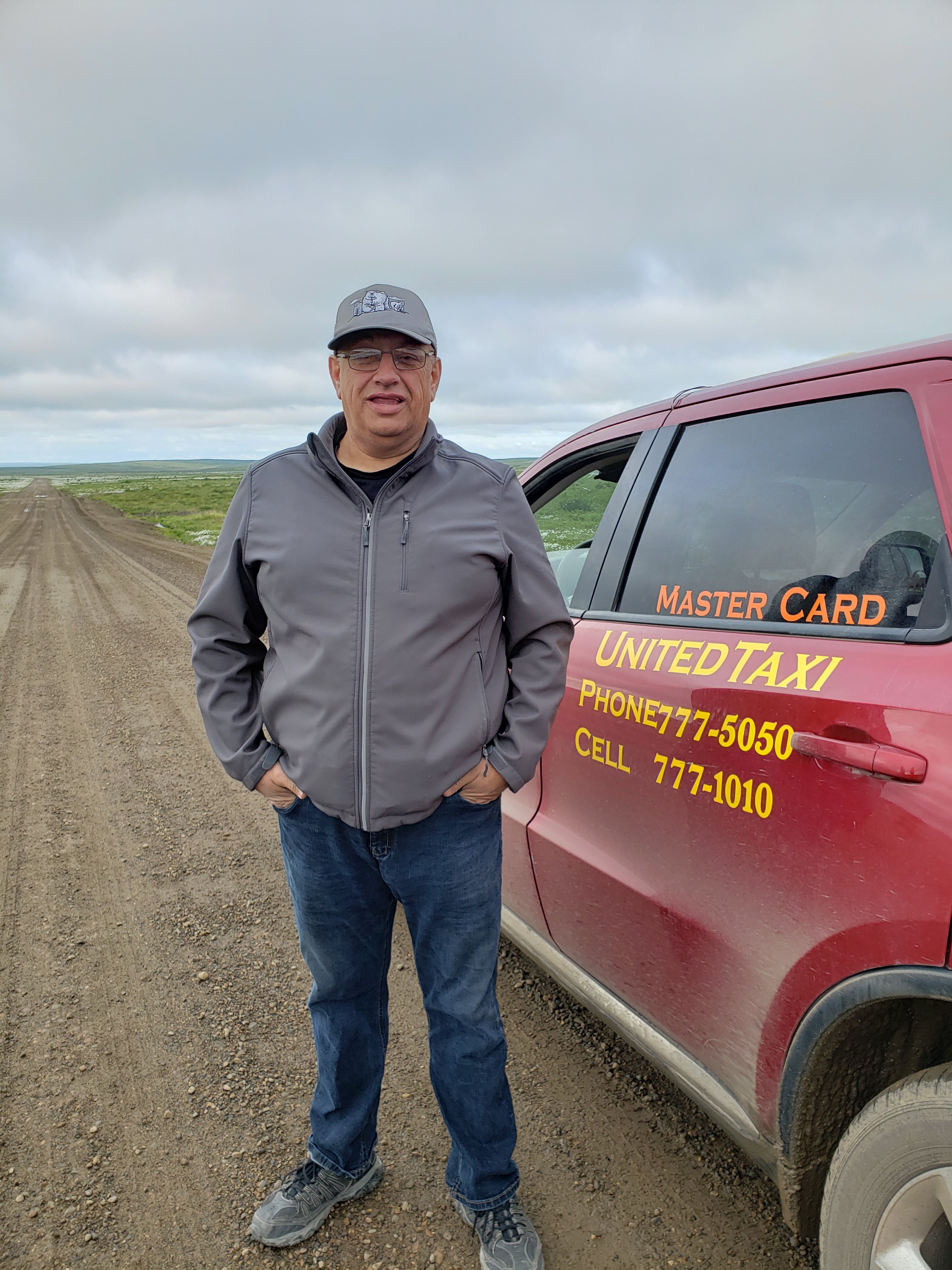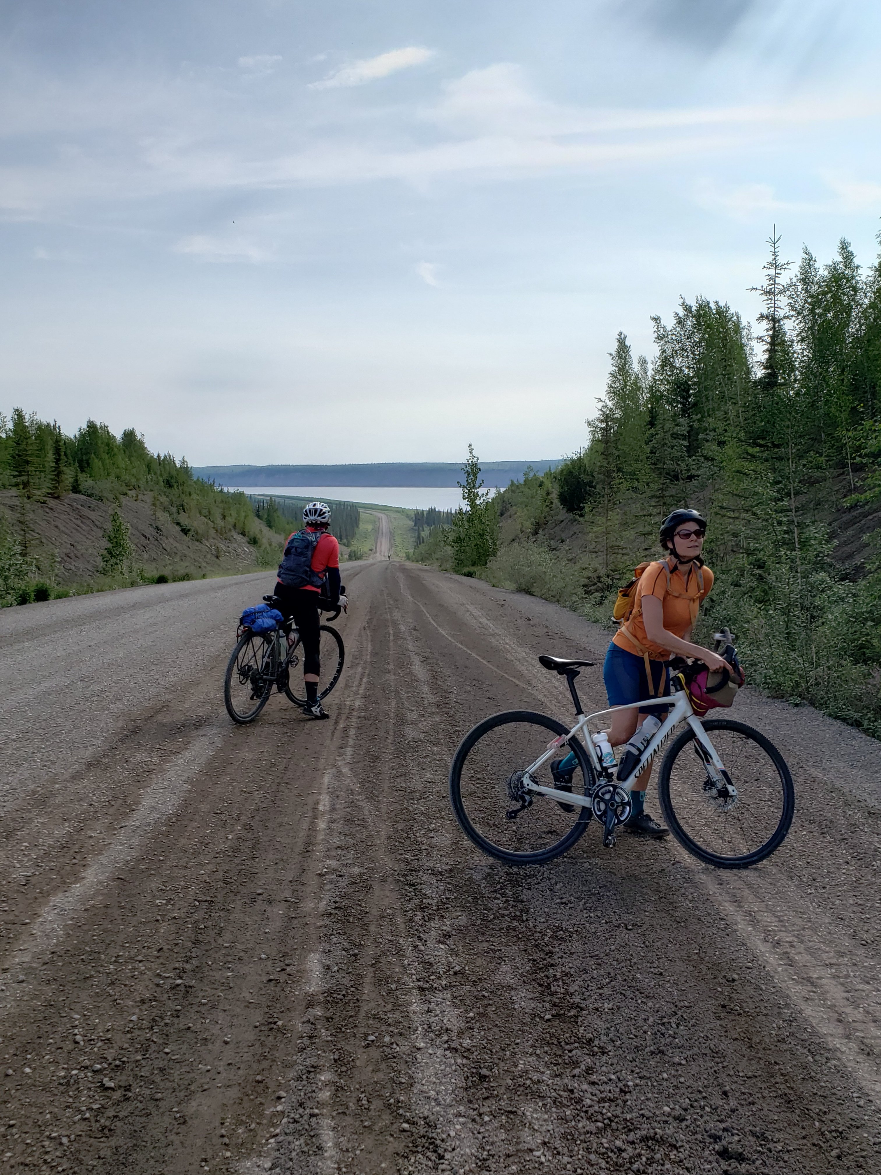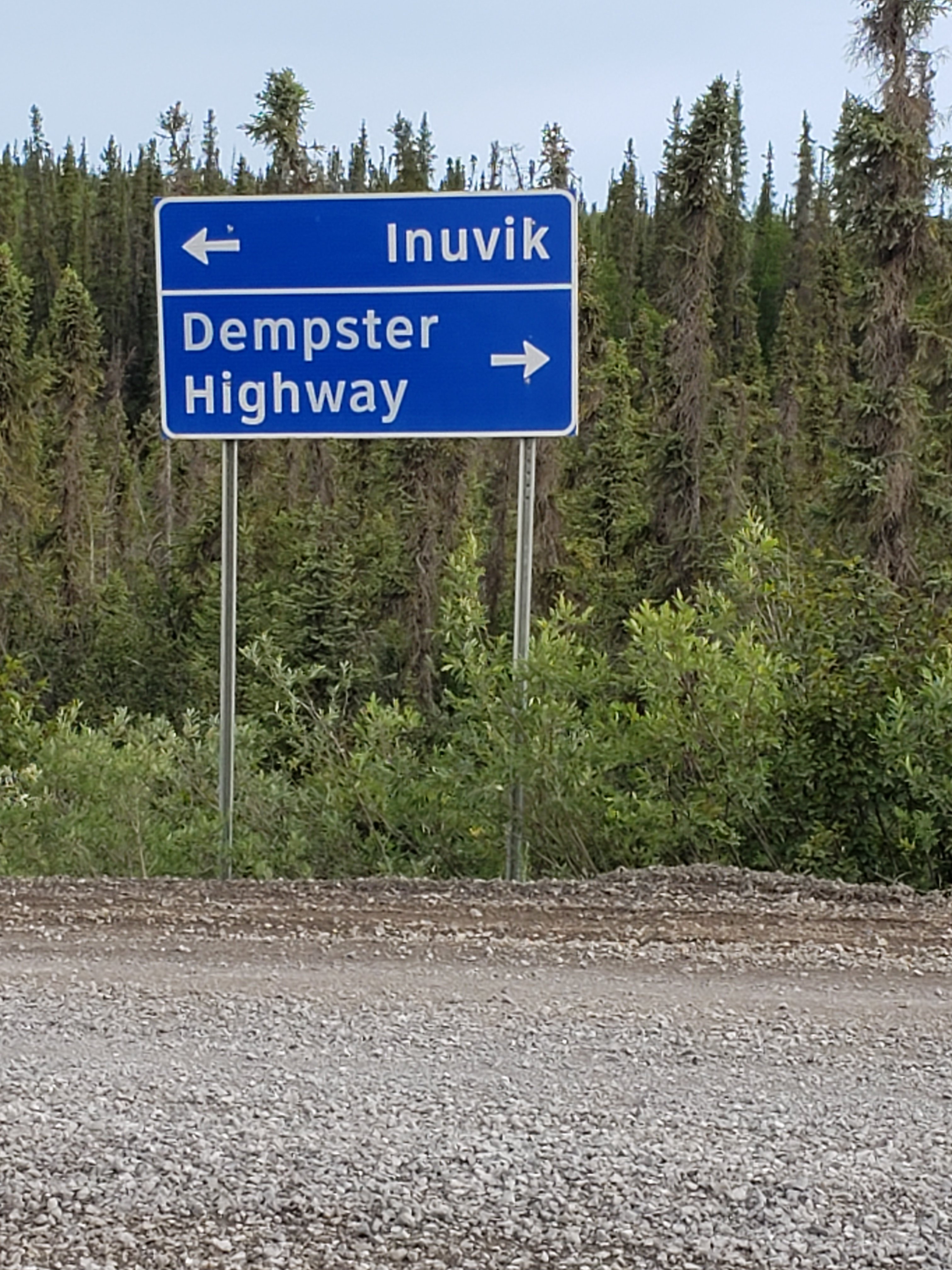 A couple of days after our arrival, our friend and riding companion from prior adventure, Debbie from the UK, decided to do a pre-ride on the “highway” to Tuktoyaktuk. We hired a driver, Mohammed, who lives in Inuvik, to drive us half way to Tuk so that we could get a taste of the road conditions in case we couldn’t complete the first days ride (95 miles on gravel from Tuk back to Inuvik).