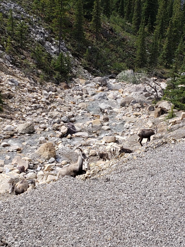 You might find it difficult to even see the mountain goats in this photo. They blend in very well with their rocky surroundings. I was slowly pedaling up this steep climb when I noticed some movement in my peripheral vision and there they were just a few feet away. Jim had cycled right past them because they were so tough to see.