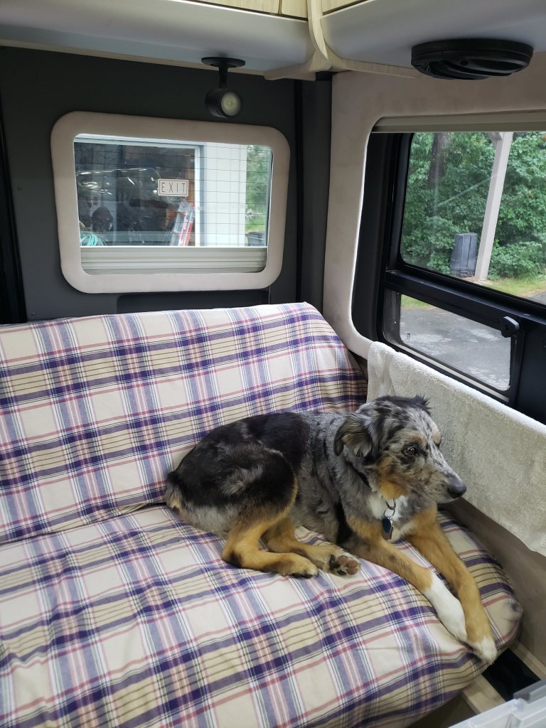 Jack is totally pleased with the plan. He has his favorite seat in the rear of the van where he can rest his head on the windowsill and survey his domain from elevated comfort. He has already been sneaking into the van and hanging out there just to “make sure” that we don’t leave him behind.