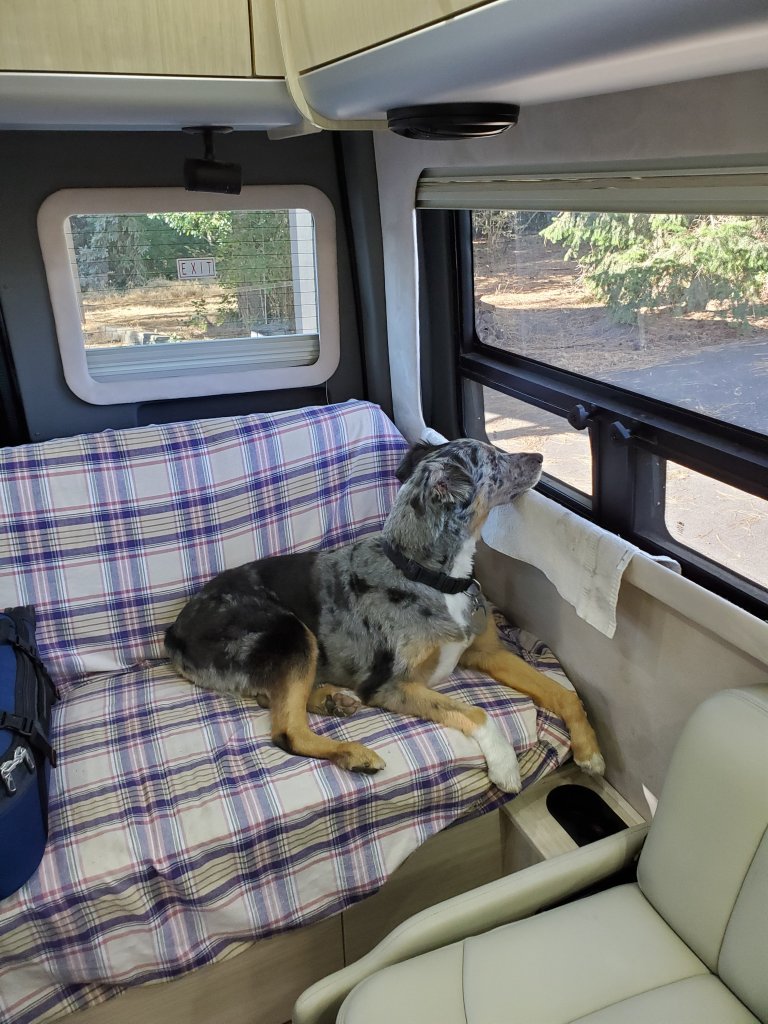 Our dogs, Jack and Star will be traveling with us once again. Star doesn’t like travel and will need to be coaxed and molly-coddled. Jack has already been hanging out in the van each day as I pack, ready to go and making sure that we aren’t leaving him behind.