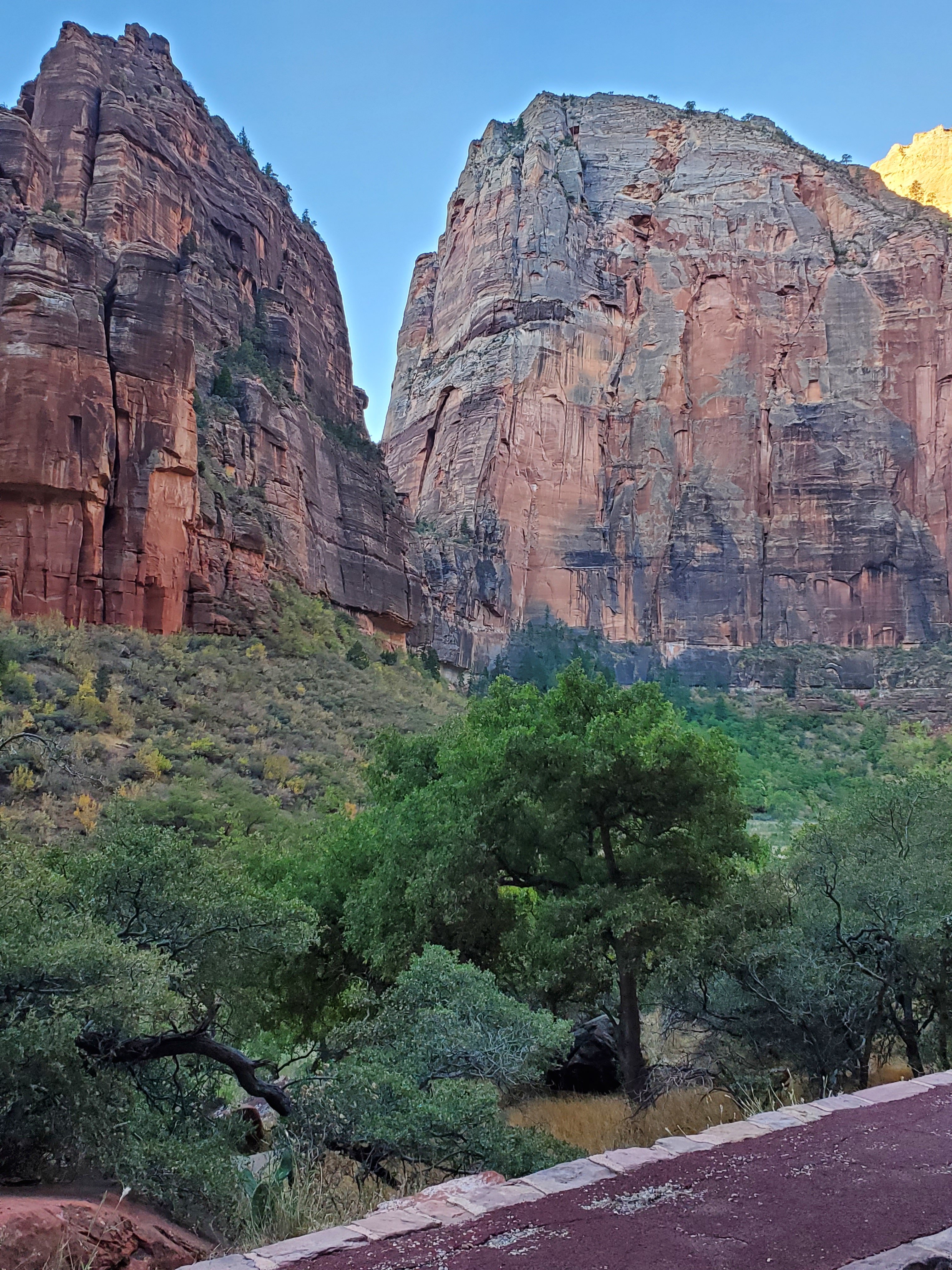 The next day we headed to Zion National Park. Its a beautiful place but much to our chagrin, loads of other folks also thought that a late season, outdoor-oriented trip was a good idea (harrumph, just who do they think they are??). After a sunrise ride up the canyon, we hit the road in our van hoping to leave the crowds behind.