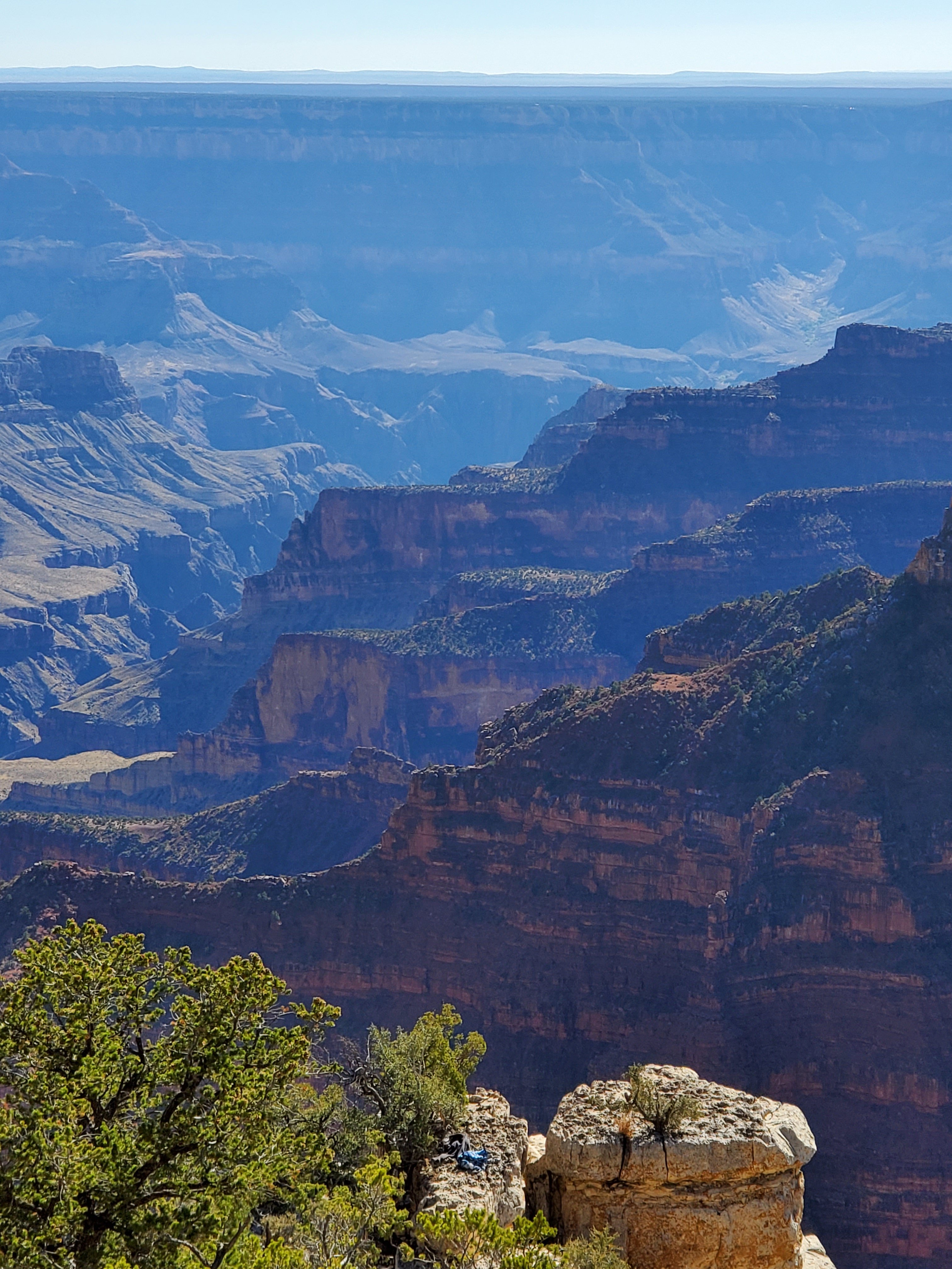 We variably drove and rode to the North Rim of the Grand Canyon. The ride to the rim was marvelous and there weren’t too many people at the rim.