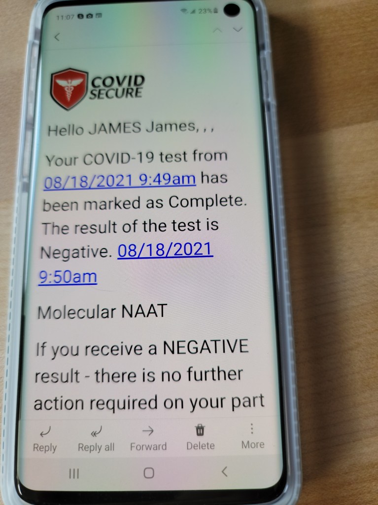 A negative COVID test! Now, we must be through the border into Canada within 72 hours