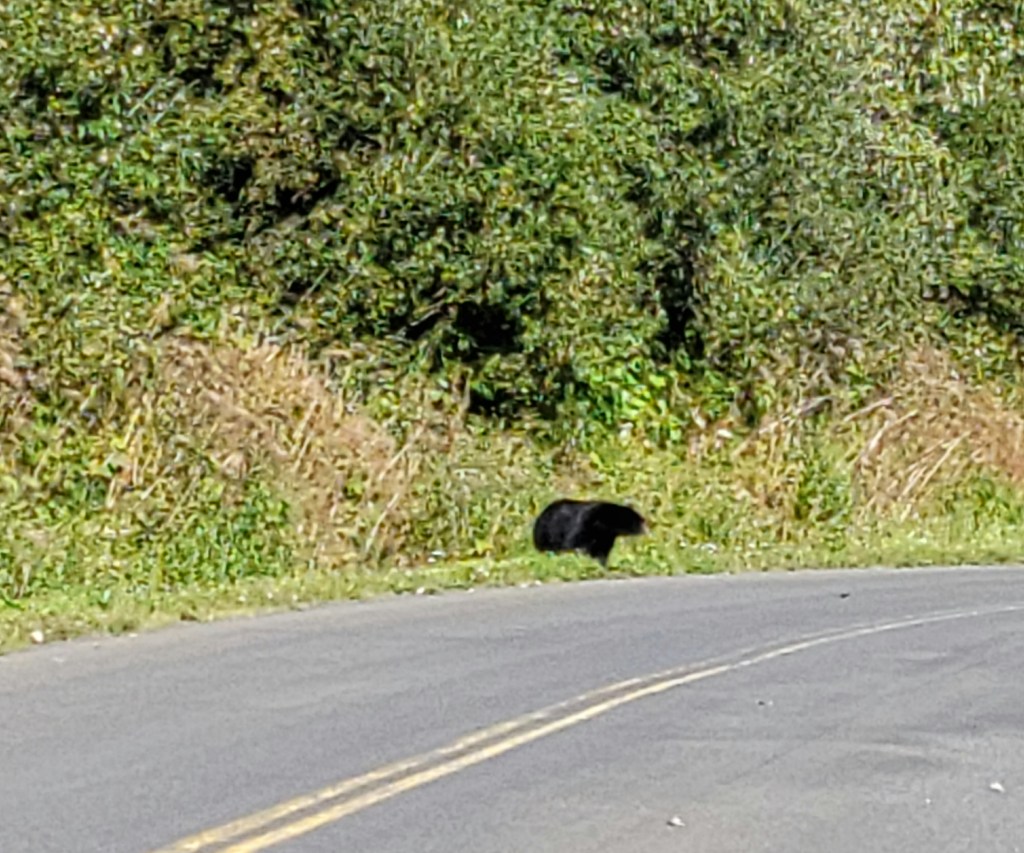 I saw three bears on the road along that section. We both ride with a can of bear spray at the ready!