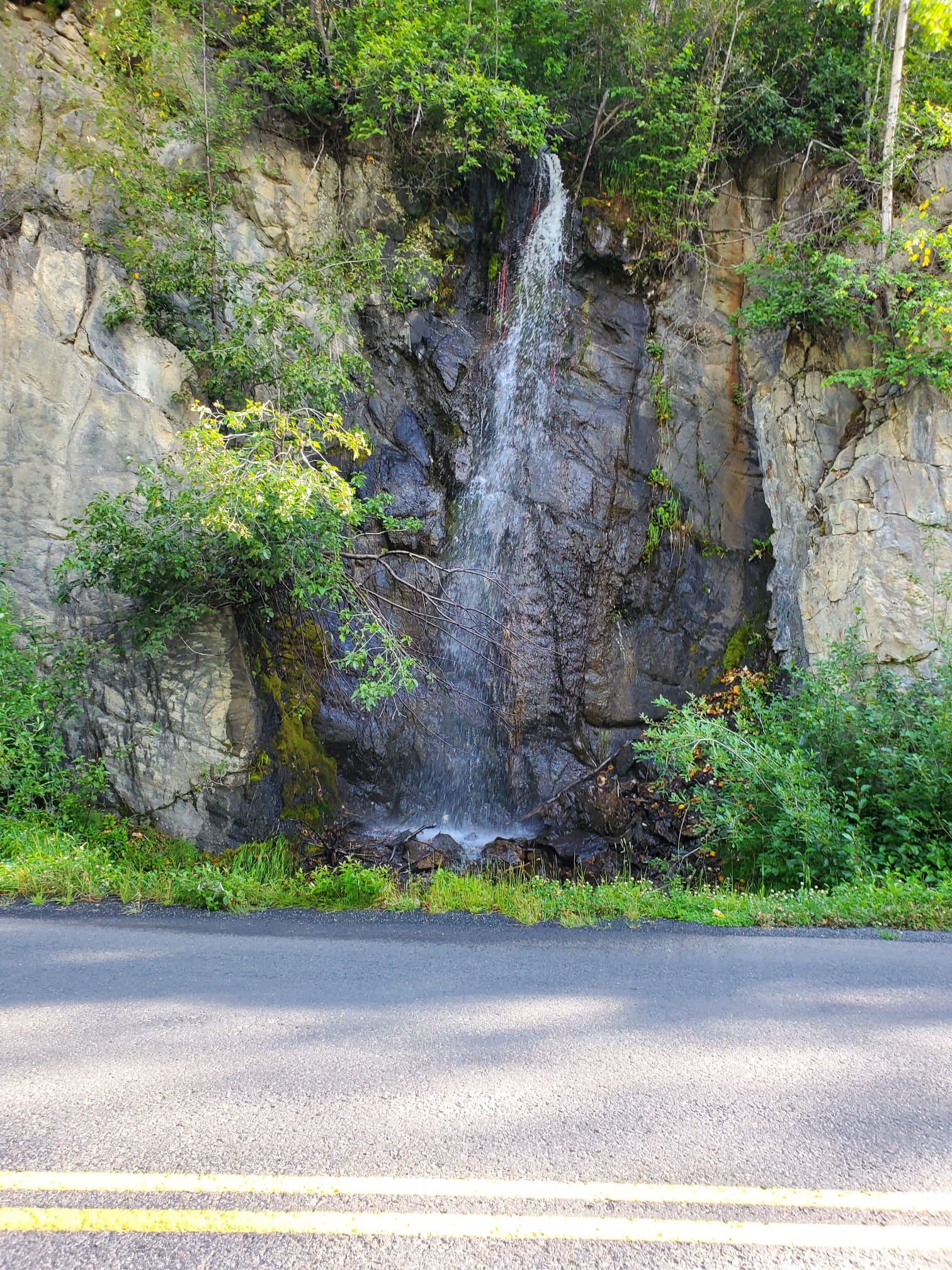 We turned up 37A, a spur that deadends at Hyder Alaska. We didn’t want to cross the border back and forth so we stopped a few km short of the end of the road in Stewart BC. Such a spectacular road! It goes by glaciers and waterfalls that seem endless.