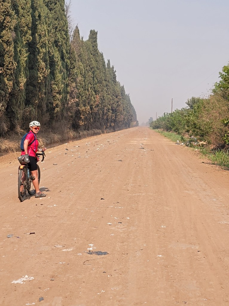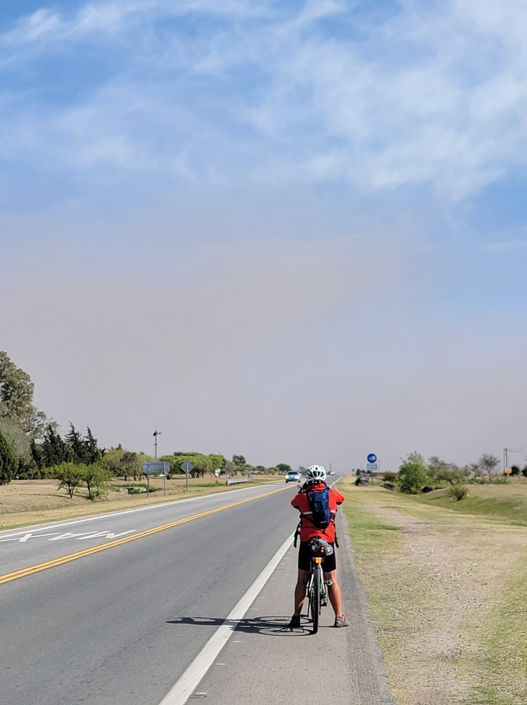 We had what seemed like a long day with headwinds on day 5 but it was nothing compared with the day of the video above. We were supposed to ride 163km ( about 101 miles but only 2 riders out of 30 made it the whole way. The portion that Jim and I rode had crosswinds initially, enough that I was blown off the road dozens of times and had to stop for any on-coming truck because the draft would suck me right across the road 🥺. The route and wind changed a bit and it was a slog of a headwind. All of the staff and riders agreed that it was the worst wind in which anyone had ever ridden.