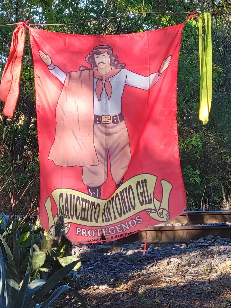 One is Gaucho Gil or Gauchito Gil. He was born around 1840 and was conscripted to fight in two local wars. After he deserted, he became an outlaw and is revered as a Robin Hood type character.
