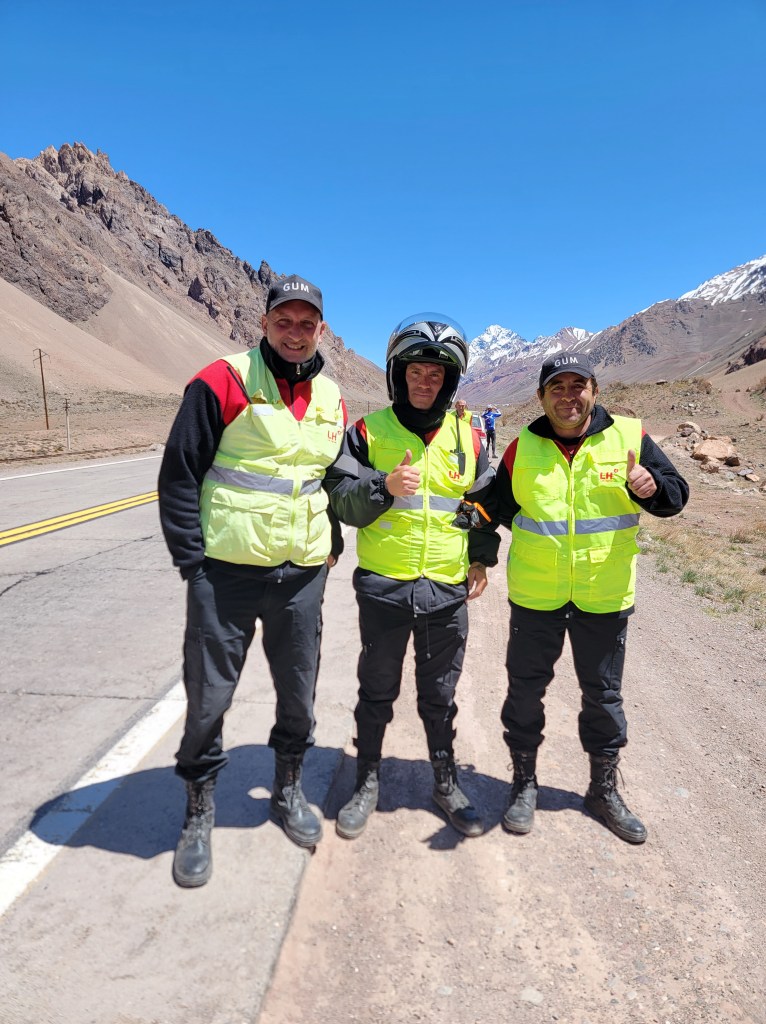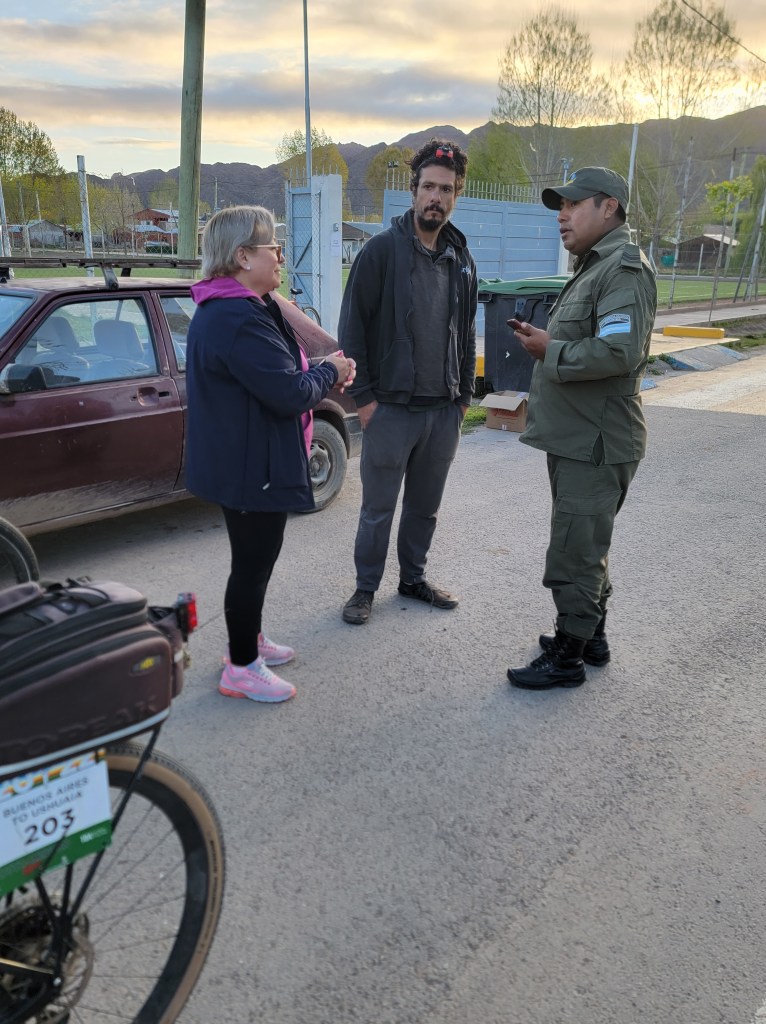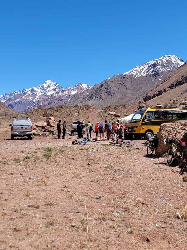 So I think we’ll pick up where we left off in the village of Upsallata, high in the Andes. Our guides had been talking with the local gendarmes, or police for some time regarding our tour through this area. In the past they had problems with complaints from the lorry drivers about cyclists on the narrow roads up to the passes and border points with Chile. Consequently the decision was made after long discussions between the tour leaders and the police to have the entire group ride in a convoy with a police escort, not a decision that made me happy at all since I climb so slowly,  especially at altitude with part of my lung missing. It was the complete opposite from my lovely solo ride up into the Andes.