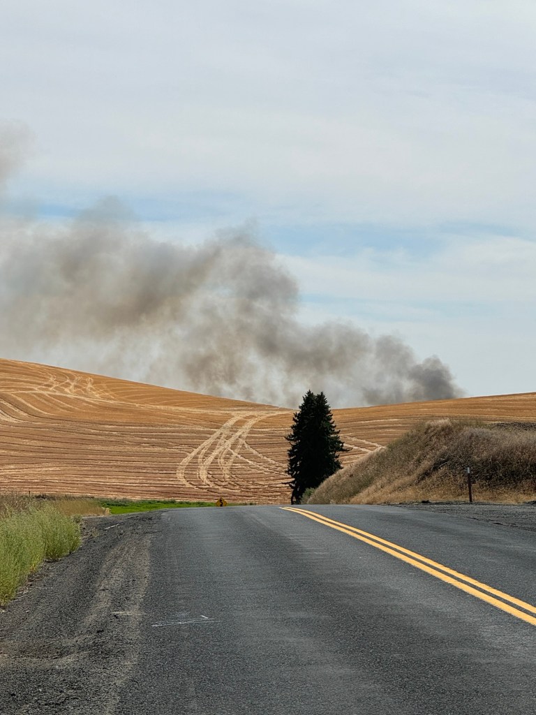 Training rides nearer to home in the Palouse were often challenging due to our unusually hot, dry, and windy weather. One day I had to turn around and alter my route due to a wildfire that was heading towards the road on which I was riding.